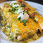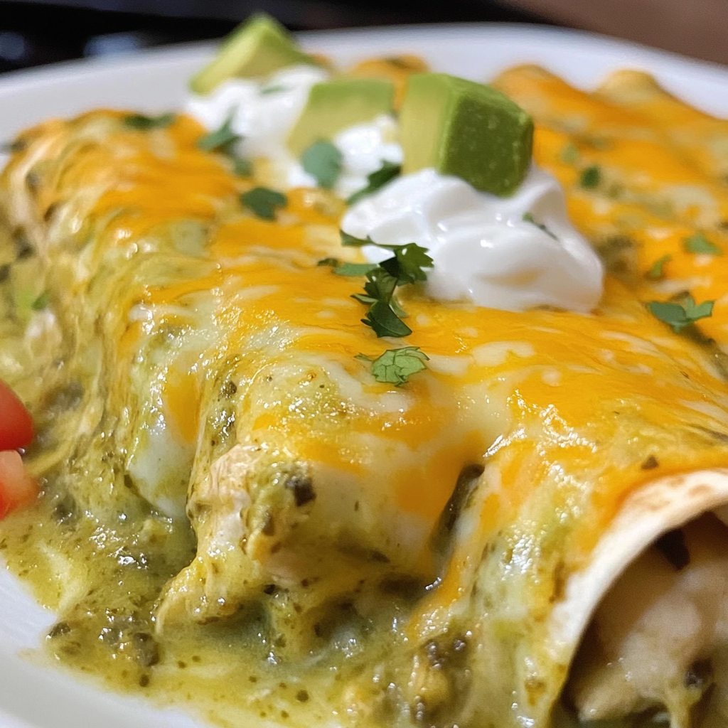 Indulge in the delightful flavors of our Green Chili Chicken Enchiladas Recipe, a perfect blend of creamy, cheesy goodness and a touch of spice. This dish features tender chicken enveloped in soft tortillas, smothered in zesty green enchilada sauce, and topped with gooey cheese. Ideal for busy weeknights or festive gatherings, these enchiladas are quick to prepare and sure to impress family and friends alike. Customize your serving with fresh toppings like avocado, salsa, or sour cream for an irresistible meal that everyone will love.