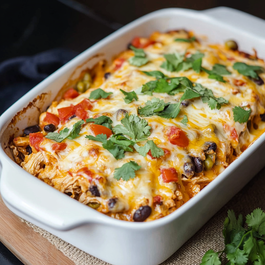 Mexican Chicken Casserole is a delightful, hearty dish that brings all the flavors of classic Mexican cuisine right to your table. Perfect for busy weeknights or family gatherings, this casserole features layers of tender chicken, savory black beans, crunchy tortilla chips, and melty cheese. The combination of spices and creamy textures creates a comforting meal that everyone will love. Plus, it’s easy to prepare ahead of time—just assemble it and pop it in the oven when you’re ready to serve. Enjoy this flavor-packed dish with fresh toppings like cilantro and diced tomatoes for an added burst of freshness.