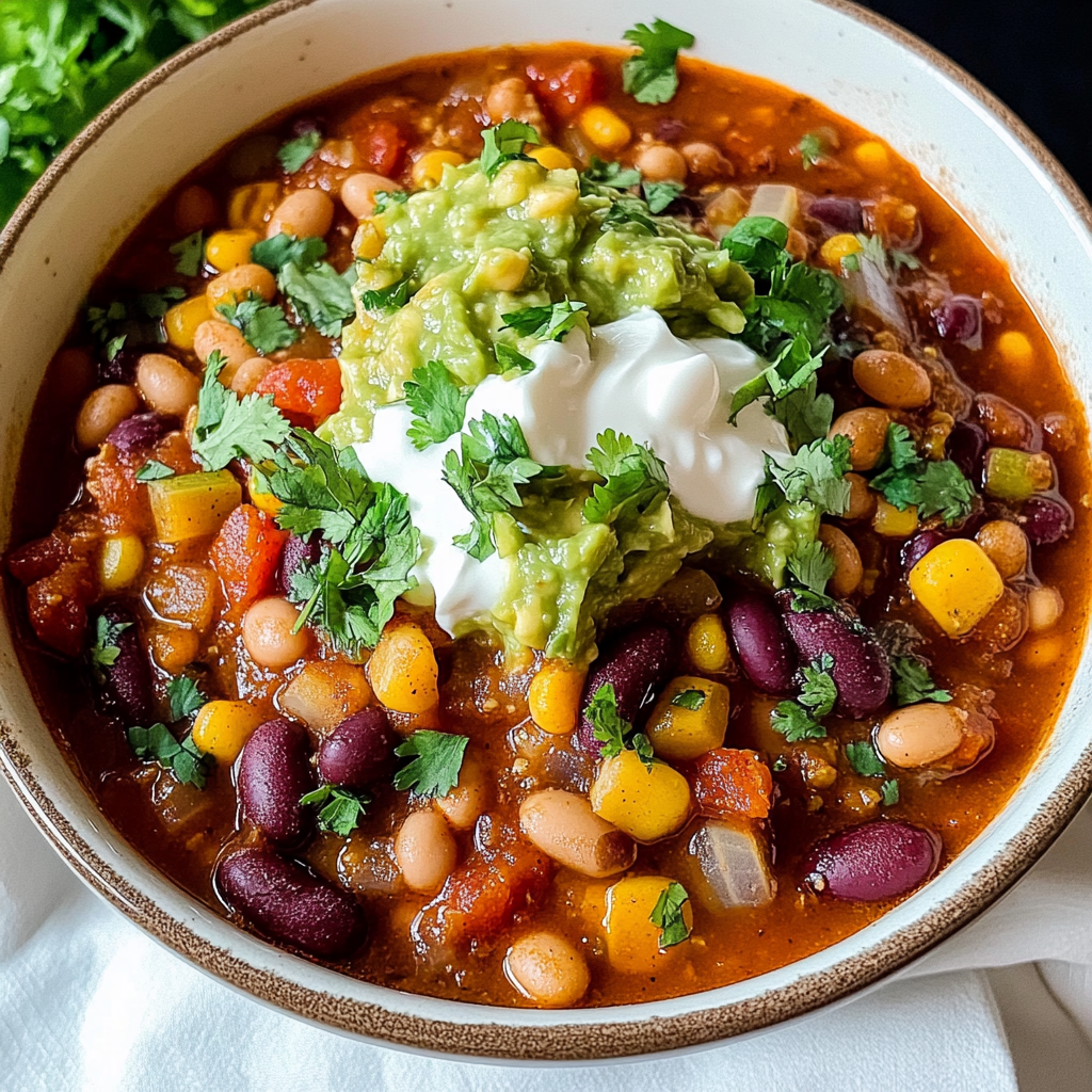 - Flavorful and Filling: Packed with beans, spices, and fresh ingredients, this chili is both satisfying and delicious.